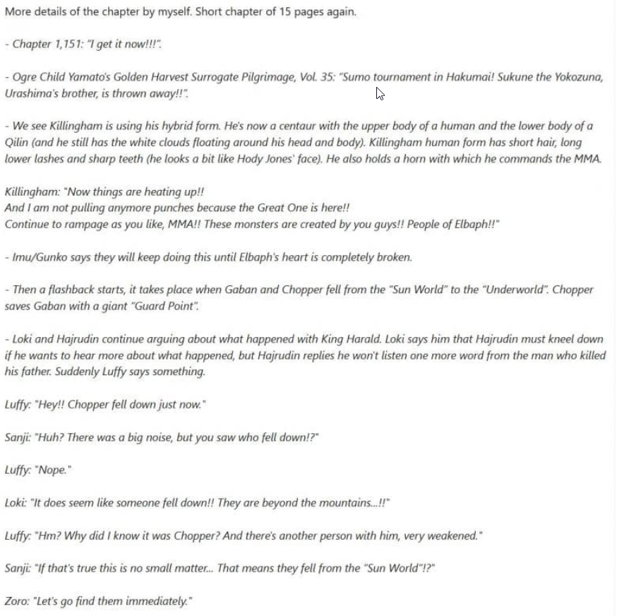 원피스 1151화의 긴글 스포일러가 공개 됐습니다.